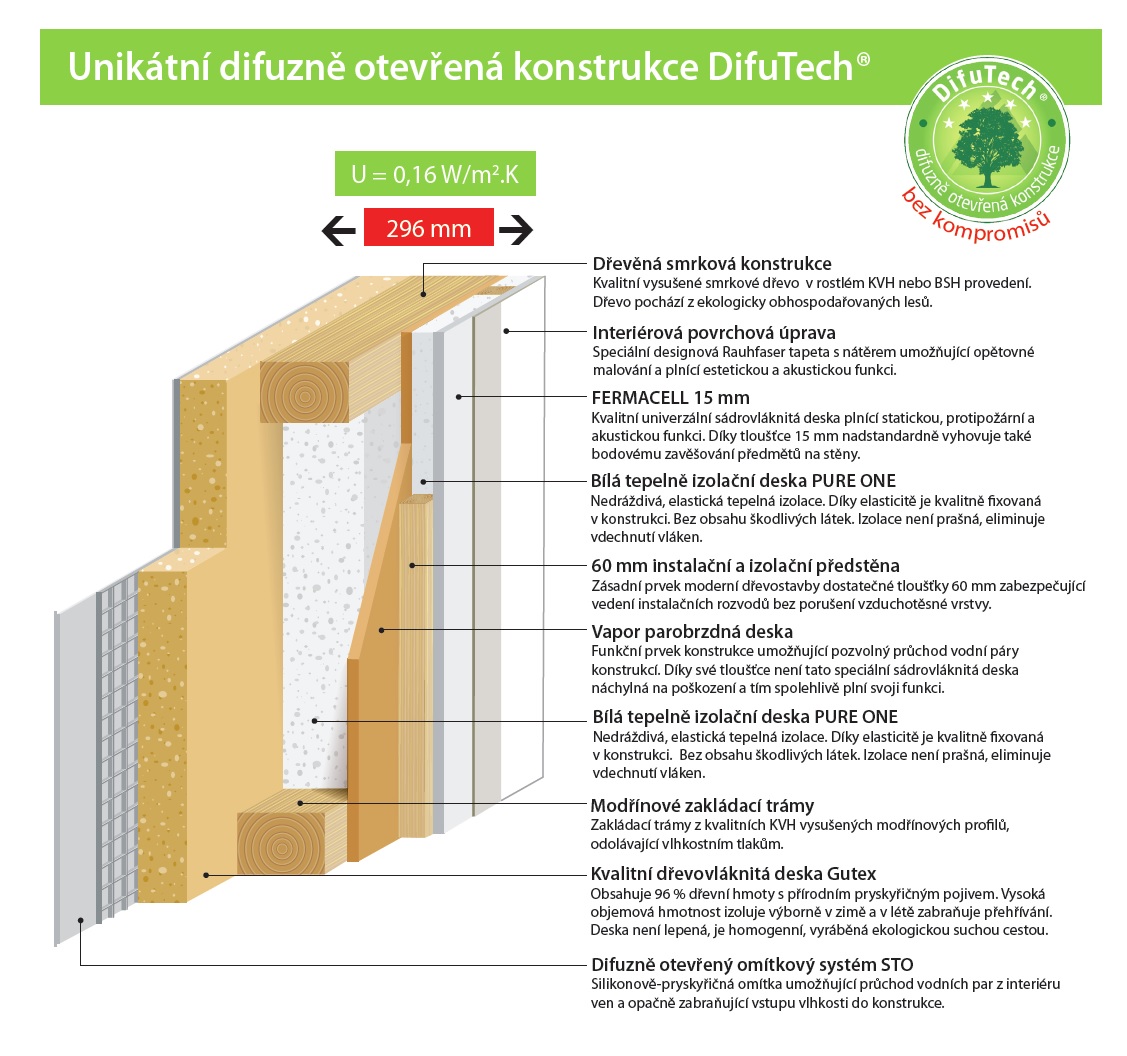 Horažďovická společnost ATRIUM, jeden z předních dodavatelů montovaných nízkoenergetických a pasivních dřevostaveb v České republice, již několik let používá při konstrukci svých montovaných domů unikátní, difuzně otevřenou konstrukci DifuTech, která ve spojení se systémem větrání s rekuperací nabízí zdravé a ekologické bydlení.
