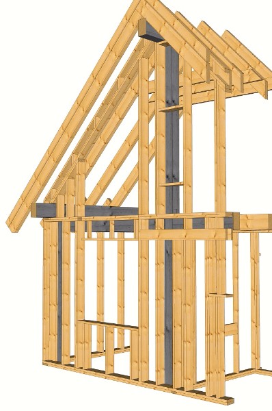 - zajištění konstrukce proti pronikání větru do tepelné izolace z exteriérové strany – což je stejné pro všechny konstrukční systémy dřevostaveb,