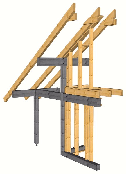 Varianta s konstrukcí v exteriéru ovšem nabízí mnohem širší architektonické možnosti pro řešení fasády stavby. Pro konstrukce těžkých dřevěných skeletů je stěžejní řešení jednotlivých styčníků, což samozřejmě zásadně ovlivňuje již zmiňované architektonické řešení konstrukce. Lze využít různé dřeviny a nejrůznější typy styčníků či ztužujících diagonál, které v kombinaci s diafragmaty dávají architektům ojedinělý nástroj, který jim jiný konstrukční materiál nepropůjčí.