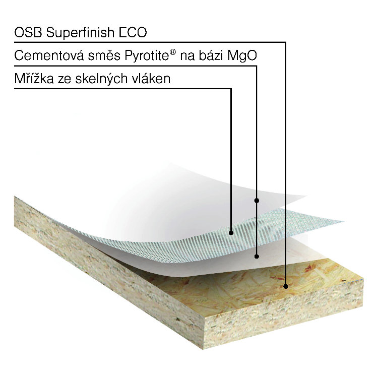 Deska OSB Firestop kromě výborných požárních vlastností nabízí i finální povrchovou úpravu vlastnostmi podobnou omítkám či sádrokartonu. Deska je vysoce odolná vůči praskání a poškození během manipulace, montáže i provozního zatížení v době používání. Požárně odolnou úpravu zajišťuje vrstva Pyrotite na jedné nebo obou stranách, která se skládá z protipožární látky vyztužené mřížkou ze skelných vláken. Tato vrstva poskytuje pevné spojení s OSB deskou a kromě vysoké odolnosti proti prohoření zvyšuje pevnost desky v ohybu i smyku ve všech tloušťkových kategoriích.