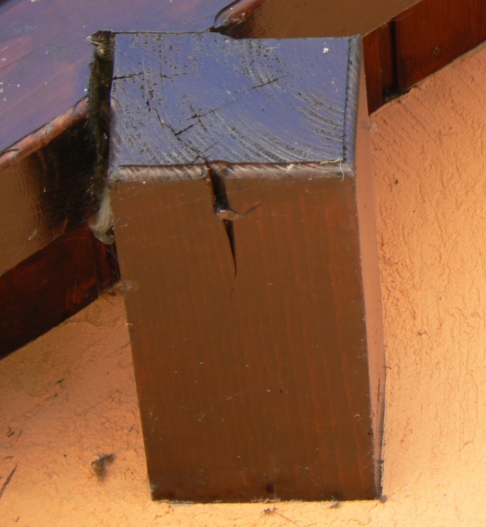 Řemeslník pracující se dřevem znající brilantně svůj obor, nemůže nikdy dopustit, aby bylo dřevo v exteriéru zbytečně namáháno zvýšenou vlhkostí. Jedná se v podstatě o to, aby kapky dopadající na povrch byly co nejrychleji odvedeny pryč, nebo v lepším případě jim bylo zamezeno přístupu na povrch úplně. Mezi klasické problémové případy, kde nepomůže ani takzvaně tvrdá chemie, jsou špatně provedené detaily dřevěného obložení, například u parapetů, zakončení obkladu nízko nad terénem nebo rovnou zahrnutí hlínou, malé spáry mezi prkny terasy a podobně. V některých případech se však jedná o detaily, které jsou staticky namáhány. Jako nejklasičtější problém se nechá označit takzvané sedlo krokve, která je předsazená a přiznaná ve štítu stavby. Sedlo musí být z venkovní strany kryté – není tedy provedené na celou šířku trámu – zhruba centimetr až dva silná zbylá stěna ochrání proti zatékání vody a tím velmi rychlé degradaci jak krokve, tak pozednice.