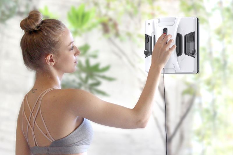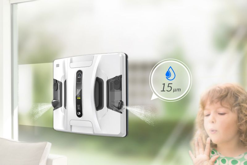 - Robotický čistič oken je vybaven AL technologií, která vypočítává dráhu čištění, detekuje okraje a rámy čištěných skel a oken a automaticky rozpozná velikost povrchu.