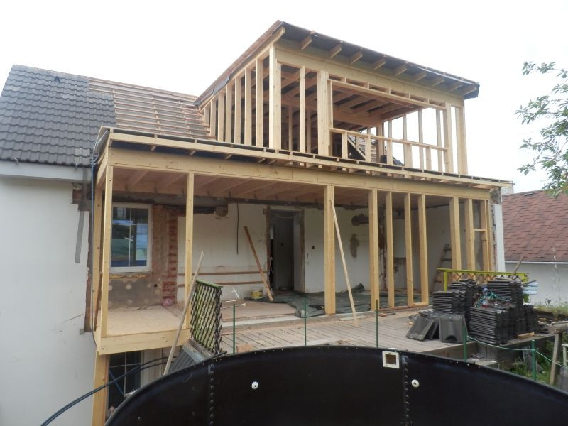 V tomto případě jde o vestavbu do stávající konstrukce krovu a stropu domu a přístavbu domu směrem do zahrady. Starý rodinný dům je vždy hádankou, do poslední chvíle často dost dobře nevíme, co nás potká a ne vždy lze přesně dodržet projekt. Vlastní stavba je ve svahu, velice obtížně přístupná a hlavní podíl stavby rekonstrukce je pochopitelně ještě z té hůře přístupné strany. A do postupného objevování stále nových skutečností vstupují změny požadavků ze strany investora. Tedy taková typická situace na stavbě ☺. Jakkoli jsem jistě zaujatý a nemohu působit nestranně, jsem přesvědčen, že jen těžko bychom hledali jiný konstrukční systém než TBF, který by bylo v daném případě vhodnější použít.