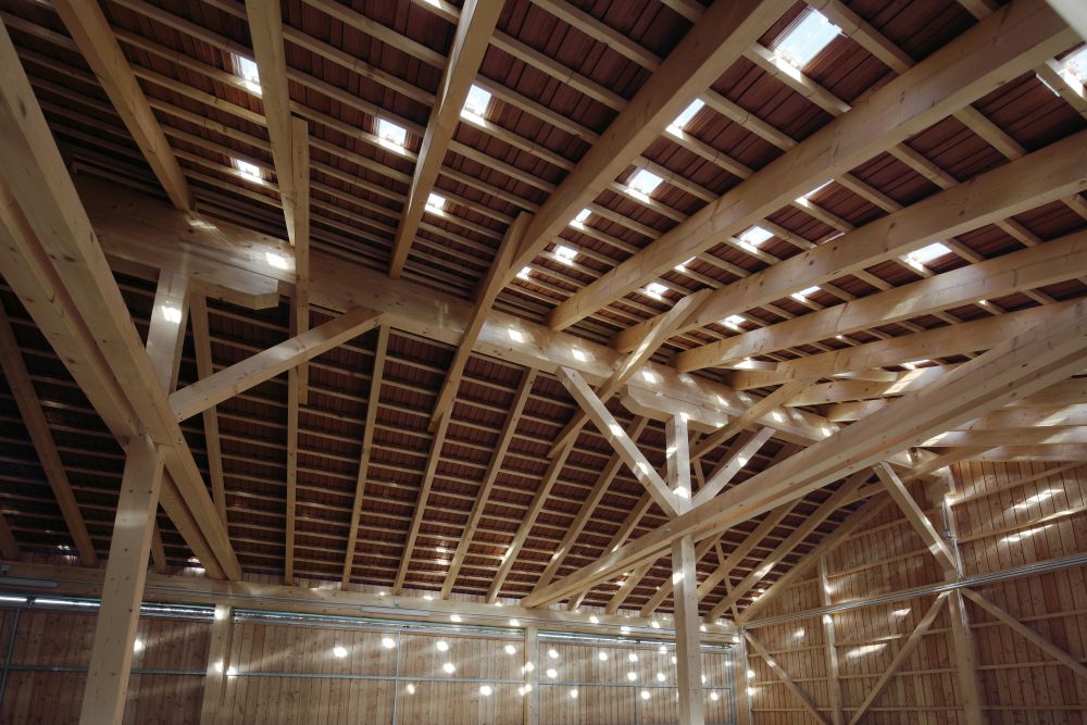Hlavní stavbu tvoří původní přízemí z omítnutých cihelných zdí bez dodatečné izolace, modřínové opláštění se v obytné úrovni propojuje s horní dřevěnou konstrukcí v patře. Polovalbová střecha s tak zvanou korutanskou valbou je typická pro zdejší pro venkovské zemědělské stavby. Jedná se o polovalbovou střechu, valby jsou však kratší a nepokrývají celý štít, aby byla umožněna cirkulace vzduchu pod hřebenem střechy.