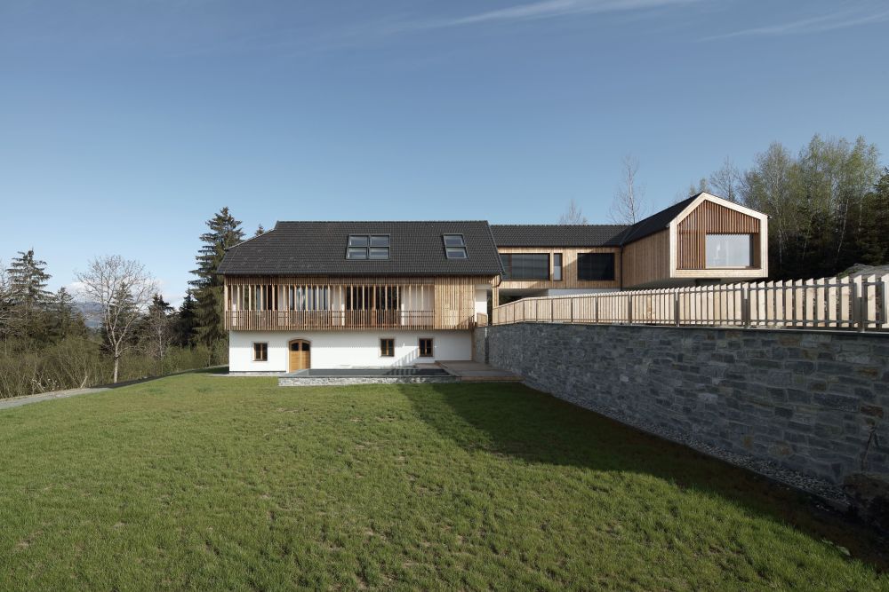 Výchozím stavem rekonstrukce zemědělské usedlosti v rakouském Feldkirchenu byl zchátralý hornokorutanský dvůr vybudovaný na lesní mýtině někdy v 18. století. Vyzděná stájová stodola s dřevěným seníkem v patře byla v duchu původní architektury převedena na novou obytnou budovu spojenou s moderním dřevěným kancelářským křídlem jako přístavbou k severu.