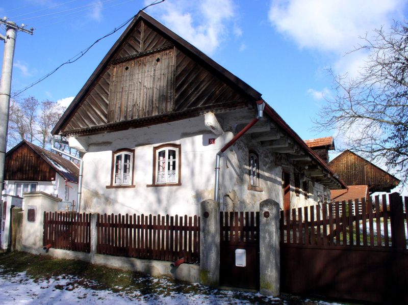 Přízemní roubené stavení z oblasti Polabí, konkrétně z Nymburska, tak trochu klame tělem: na první pohled by nezkušenému pozorovateli mohlo uniknout, že se jedná o dřevěnou stavbu. Dům je totiž nabílený – což ovšem k historickým roubeným stavením v Čechách neodmyslitelně patřilo – a přední část je navíc ještě omítaná hliněnou omazávkou, tak zvaným kožichem.