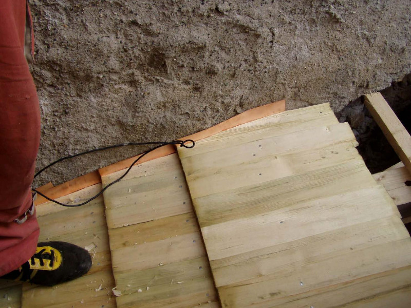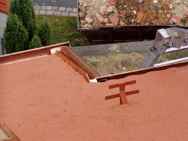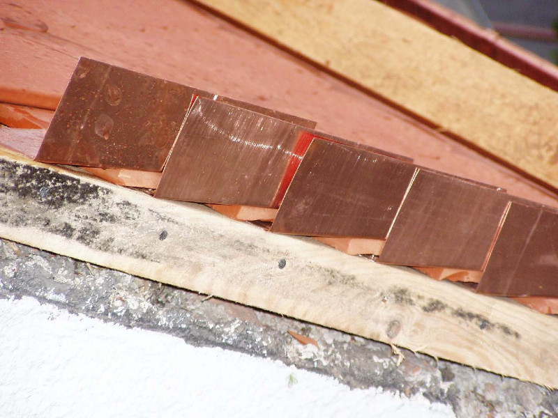 Nároží s rizikovým sklonem vybavené proložkami - nejsou vidět, ale vodu odvedou bezpečně.