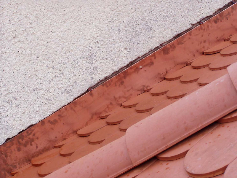 Lemování ke zdi lze doplnit krycím plechem na zvýšení proti závějím sněhu.