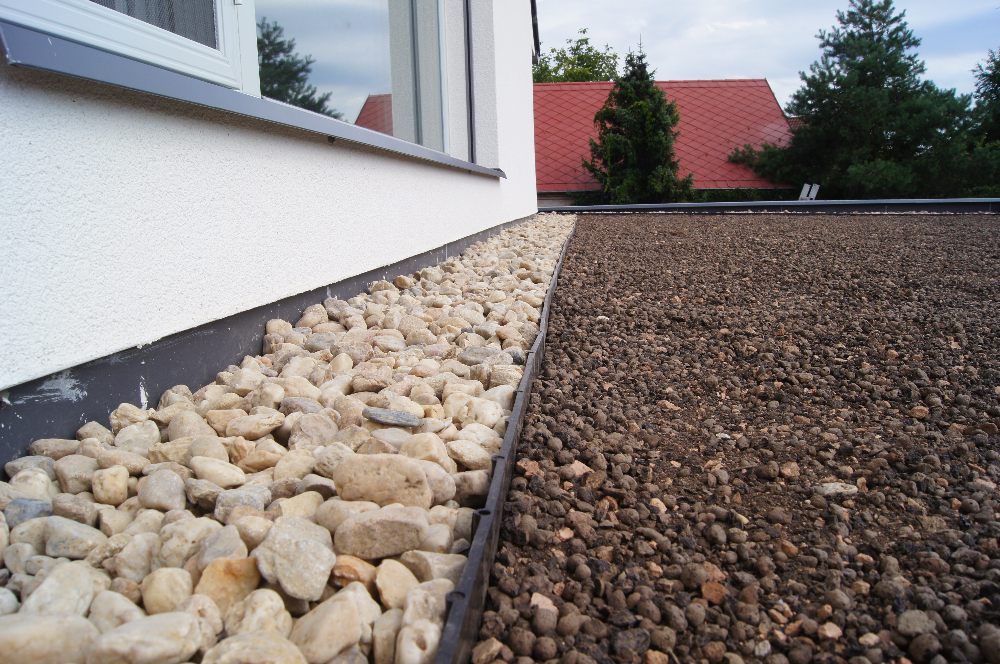 S přihlédnutím k nižší statické odolnosti střechy dodala firma BB Com speciální odlehčený střešní substrát a kačírek, použitý na okraje střechy a obvodové lišty.