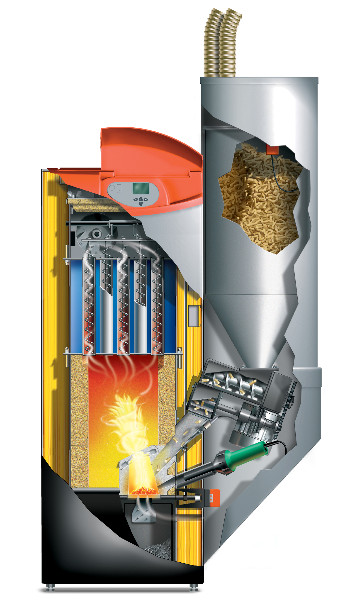 Také kotle na pelety určené pro vytápění energeticky náročnějších objektů mají dobrou účinnost (zpravidla přes 90 procent) a dobrou regulovatelnost. V současné době se vyvíjejí také kondenzační kotle na pelety, které díky využití kondenzačního tepla vodní páry ze spalin přidají k účinnosti ještě dalších zhruba 10 procent.