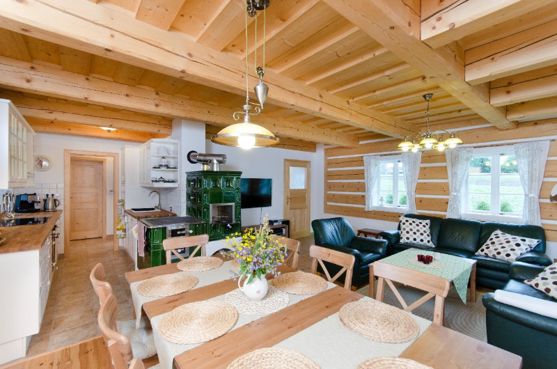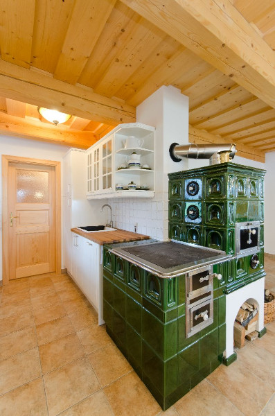 Do vesničky je zaveden plyn a to si majitelé opět nemohou vynachválit: „Topení totiž ovládáme telefonem na dálku, což patří k standardnímu vybavení všech zdejších roubenek. Chalupu stále temperujeme na 10-11 stupňů a když sem jedeme v zimě na víkend, pošleme tak v Železném Brodě (vzdáleném asi 20 kilometrů) impuls a chalupa nás vítá příjemnými patnácti stupni. Pak hned zatopíme v kachlových kamnech, které sice teplo nějakou dobu akumulují, zato jejich plotna sálá okamžitě. Za chvíli je tu příjemně. V místnostech máme radiátory, ale i v zimě většinou vystačíme s kamny, která plní zároveň funkci klasického sporáku, to je další úžasná věc."