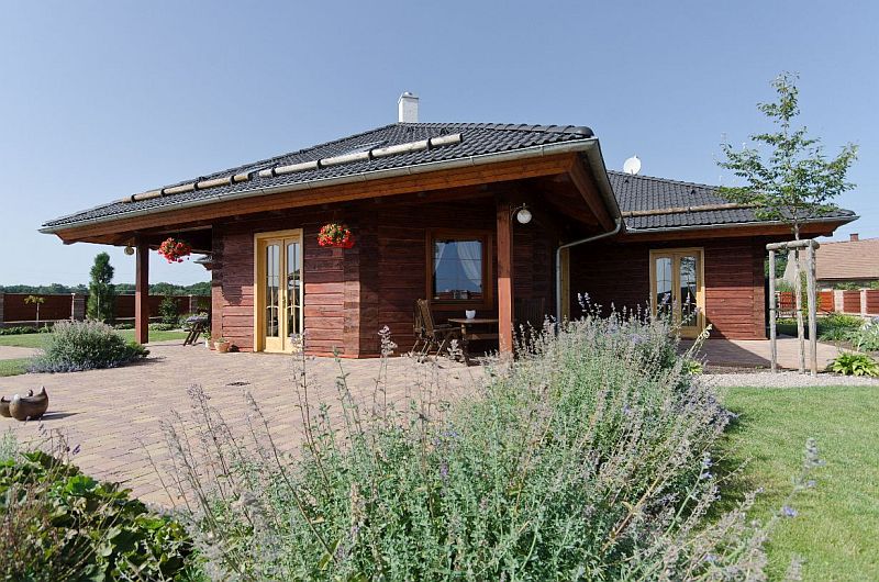 obr.: Velké střešní přesahy umožňují pohybovat se kolem domu za deště "suchou nohou". Foto: Martin Zeman