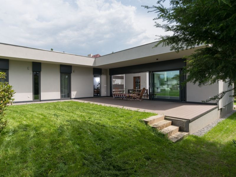 • Dřevěná vila schoulená v náručí krajiny