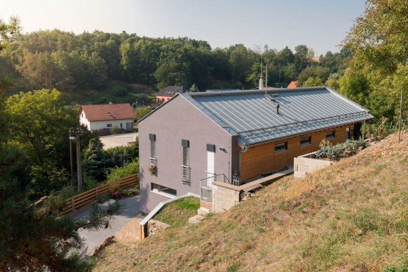 Po mnoha letech života v Praze se Ondřej a Pavla rozhodli pro novou etapu na novém místě. Výzvy postavit si nový dům se i přes svůj zralý věk nezalekli a nezastavil je ani komplikovaný pozemek v prudkém svahu. Pohyb po zahradě sám o sobě s přehledem nahradí kdejakou sportovní aktivitu, ale majitelé to berou prostě jako fakt. Charakter místa dává stavbě nezaměnitelnou příchuť, kterou lze vnímat v každém detailu domu. Generuje zkrátka jiné řešení, než když stavíme na více méně rovinaté louce. Je dalším potvrzením, že zdánlivé komplikace a výzvy nás mohou přivést k velmi kreativním a ojedinělým řešením, která stojí za to.
