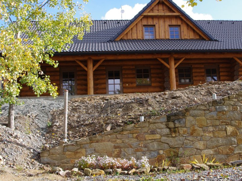 srub a kamenná zídkainteriér srubusrub a terasa oooo