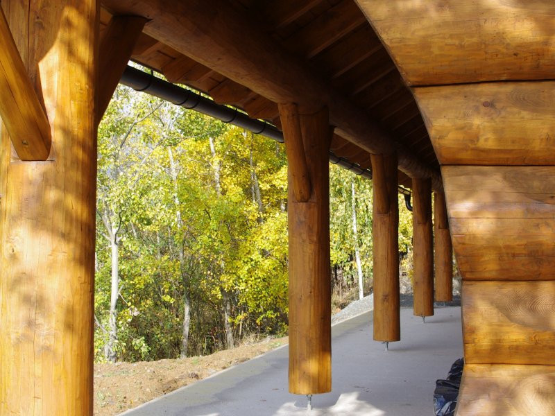 Při výběru stavební firmy možná hrál roli fakt, že sídlí v nepříliš vzdáleném Brně, ovšem budoucí investory velmi oslovil také charakteristický vzhled a provedení staveb. „Viděli jsme jejich realizace a oslovilo nás typické vybrání kuláčů do oblouku v přesazích," pokračuje Ivana. „Do určité míry jsme pozměnili základní projekt – ve štítech byly původně balkony na obou stranách, ty jsme vynechali. Terén nás donutil udělat přízemí a kolem srubové části domu máme velkou terasu.