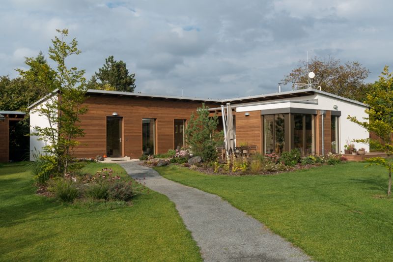 - Konstrukční systém: masivní dřevěné panely (DEKPANEL), pohledové i skryté krokve, dřevovláknitá tepelná izolace