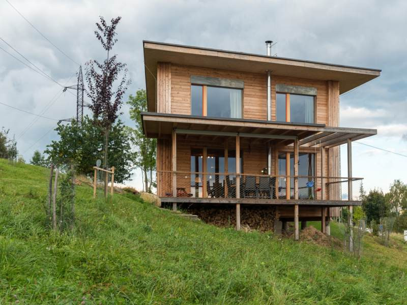 Dřevěná vila schoulená v náručí krajiny