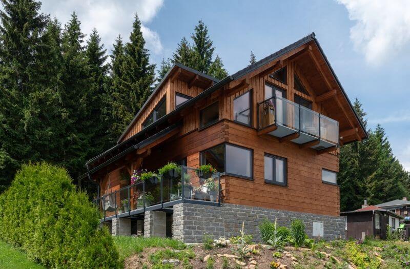 - Konstrukční systém: masivní roubená konstrukce z vysušených lepených smrkových BSH hranolů