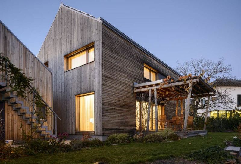 Hodnoty prostorové struktury a architektonické úrovně domu vycházejí z typového projektu dřevostavby, významně upraveného s respektem k tradiční urbanistické struktuře vesnice a vnitřním uspořádáním podřízeným stylu majitelů i návaznosti na světové strany. Kuchyň je orientována na východ, kde se rodina potkává ráno u snídaně a o víkendech se vaří obědy.
