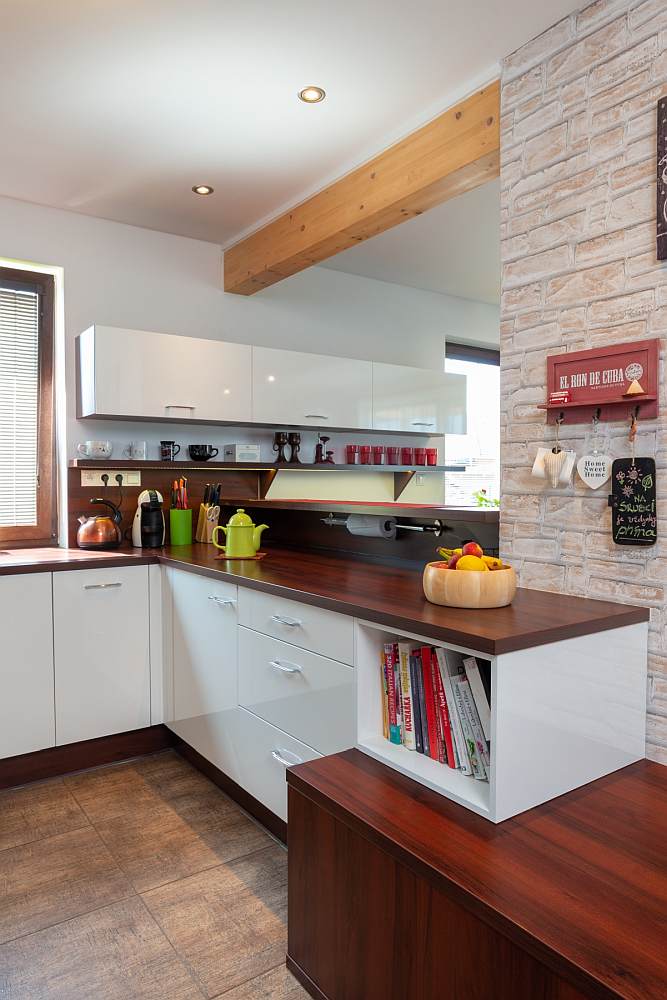 U nás je v kohoutcích extrémně měkká voda, takže spotřebiče nám děkují i tak. Něco bychom ale změnili určitě. I když se tady a teď cítíme maximálně spokojeni a neměnili bychom, občas žertuji, že na důchod si necháme postavit jiný dům, bungalov maximálně tak 3+kk, což nám bude bez dětí plně stačit a manžel nebude nadávat, že půlku soboty trávíme úklidem.