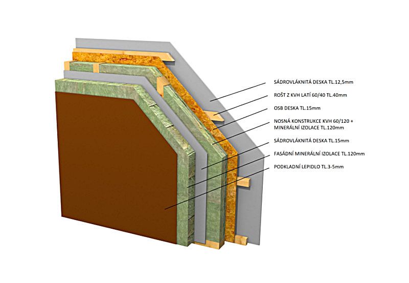 - Součinitel prostupu tepla stěnou: U = 0,156 W/m2k