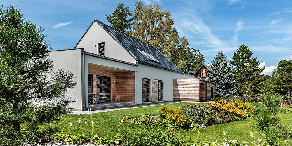 obr.: Návrh a představy majitelů o domě byly ovlivněny členitostí pozemku a místními regulativy, které vyžadují sedlovou střechu s ostrým sklonem, typickou pro tuto oblast. Foto: Kateřina Raimová