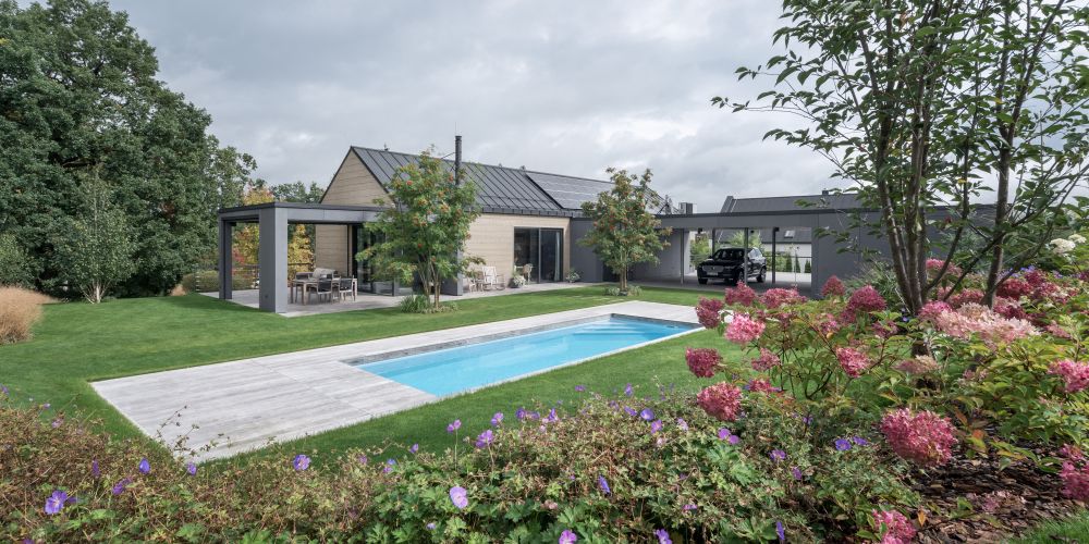 Dřevěná vila schoulená v náručí krajiny