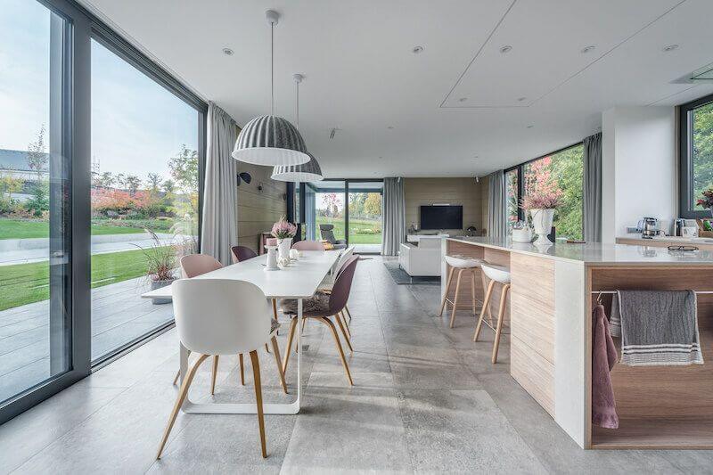 "Vnitřní prostory domu jsou zařízeny s citem pro detail. Opticky velmi příjemná je kombinace dřeva, velkých oken a jemných pastelových tónů."