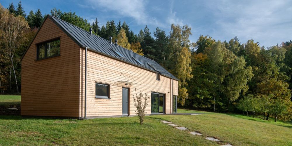 Dřevěná vila schoulená v náručí krajiny