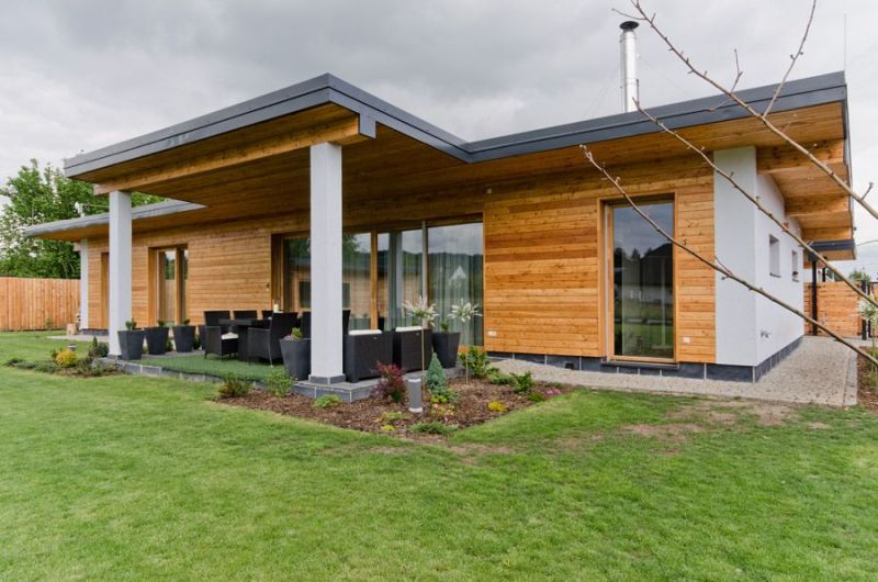 Dřevěná vila schoulená v náručí krajiny