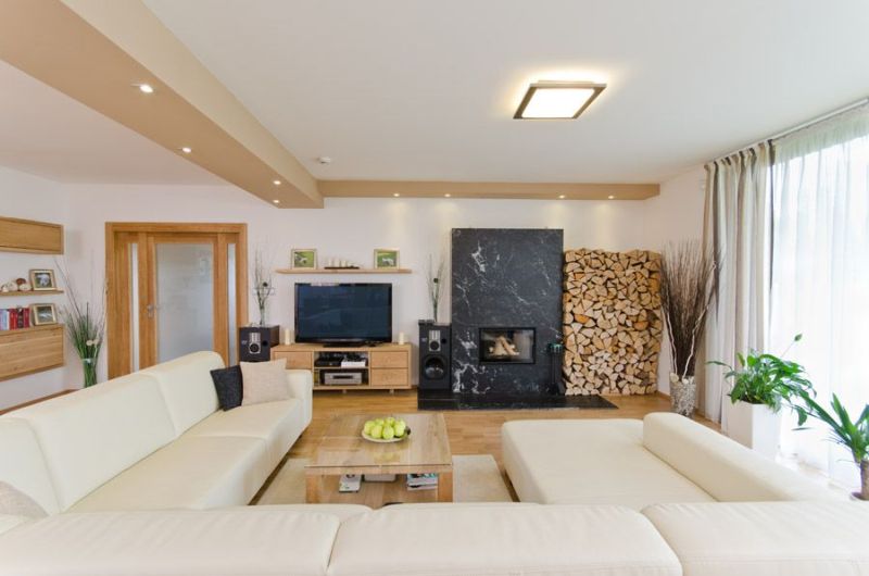 Netoužil jsem sice přímo po pasivním domě, ale kdo by nechtěl ušetřit! Větší tloušťku izolace (32 cm) v kombinaci s podlahovým vytápěním, malým elektrokotlem a tepelným čerpadlem systému vzduch-voda pro ohřev užitkové vody považuju za elegantní kombinaci. O tepelnou a duševní pohodu se navíc stará krbová vložka s výkonem až 9 kW.