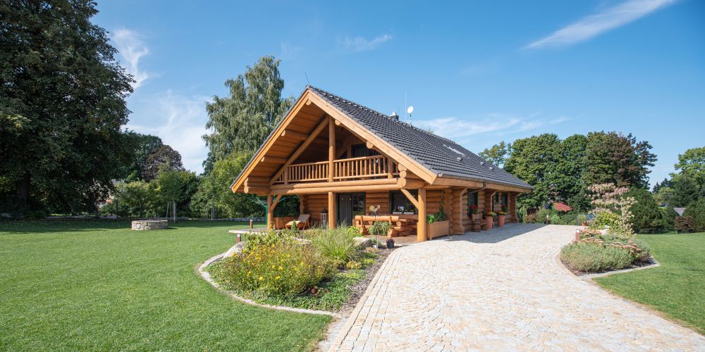 - Stavební systém: srubový dům ze smrkové kulatiny o průměru 35–40 cm