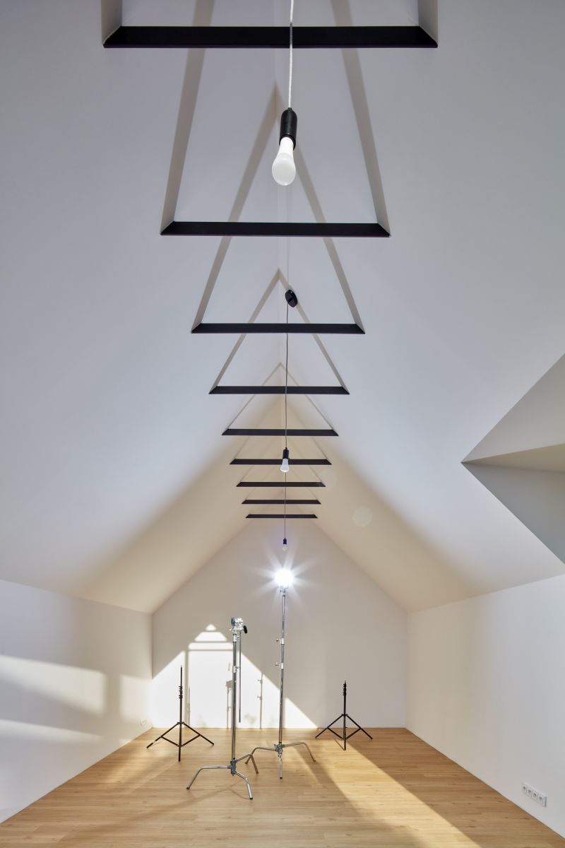 - Denní světlo je nejpřirozenější tvůrčí nástroj malíře i fotografa. Prosklený východně orientovaný štít se ukázal jako dobrá volba – větší část dne pouští dovnitř světlo rozptýlené a v nejteplejších hodinách je proti slunci chráněný.