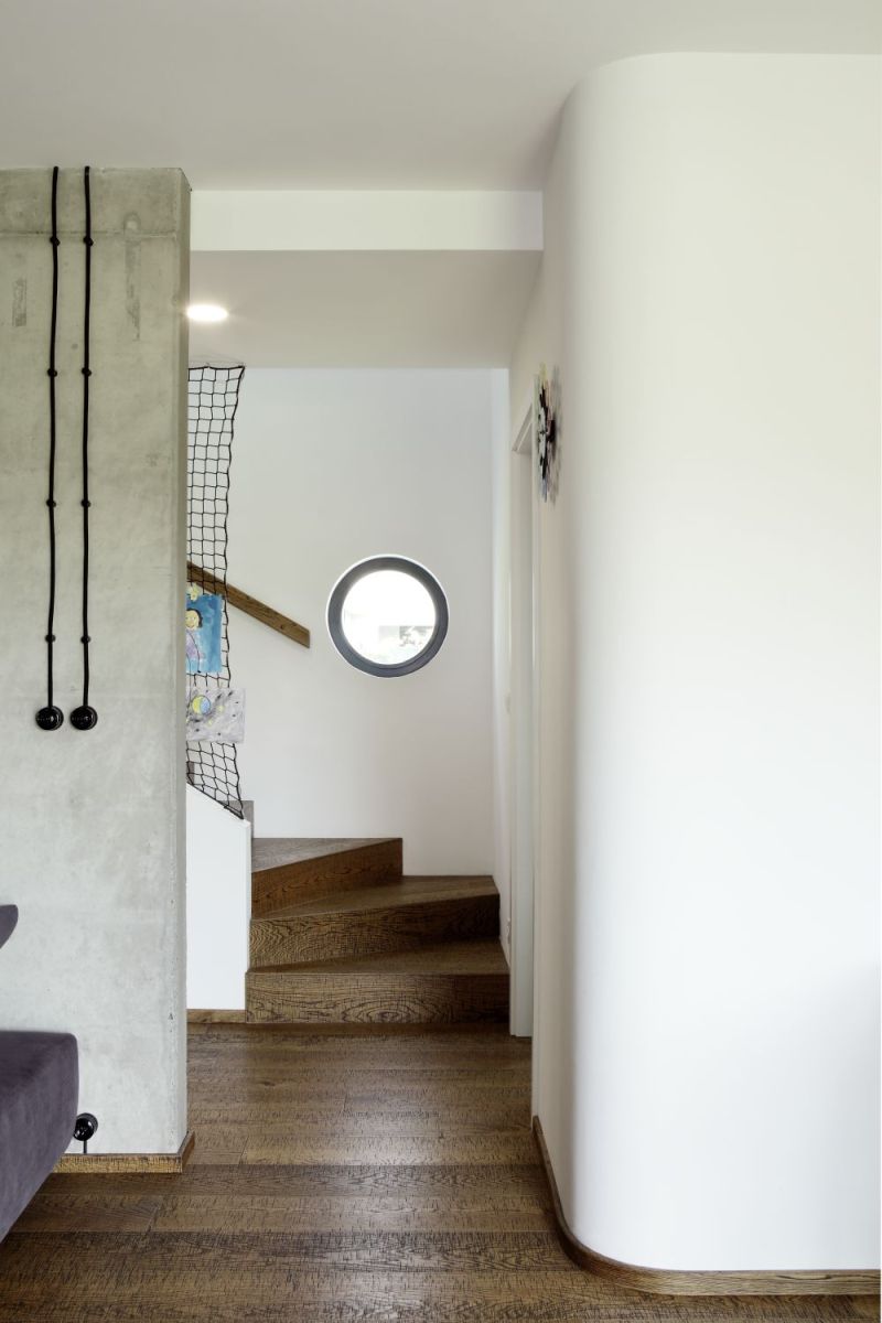 Inspiraci třicátými lety i rafinovaný dětský svět skrývá tato nenápadná dřevostavba. Z rukou architektů vzešel originální počin oplývající mnoha unikátními detaily – od kulatých oken přes multifunkční stěnu v obýváku po hravě průchozí dětská království.