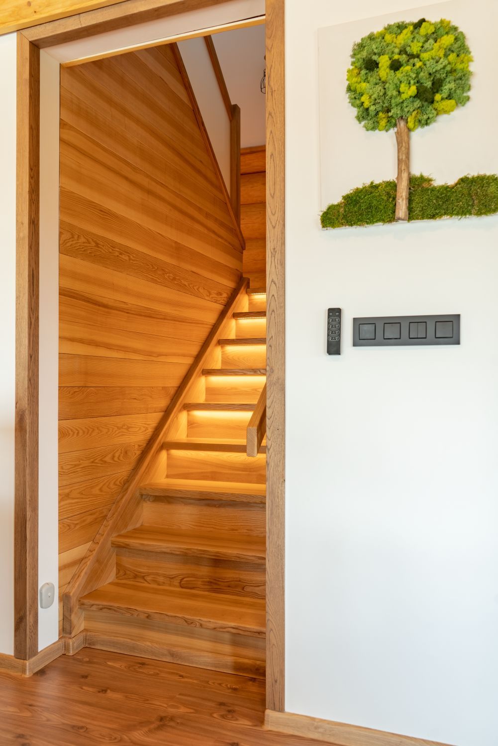 Z technického pohledu je ve srubu zřízeno řízené větrání s rekuperací, které si majitelé pochvalují. Úspora času je znát i díky chytré domácnosti. „Pohodlně můžeme ovládat otevírání a zavírání dveří, světla v místnostech, teplotu a po špatných zkušenostech tu máme nainstalovaný i kamerový systém. Jak říkám, jsme tu se vším spokojeni a nic bychom nezměnili.".