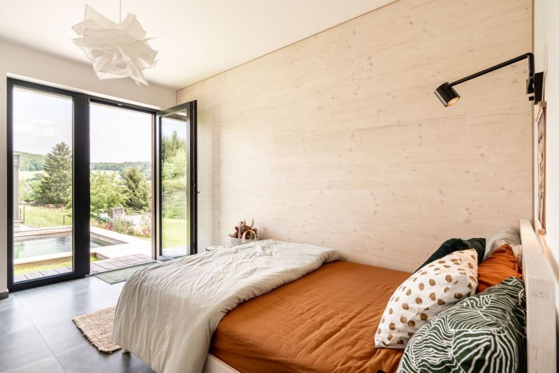 (Smích.) Je to o kompromisech. Vždy je možné najít zajímavější řešení. Pokud bychom ale nemuseli brát ohled na rozpočet, líbila by se nám konstrukce v masivních CLT panelů a otevřený krov.