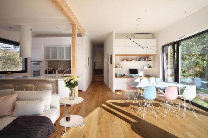 Stavět ze dřeva pro nás bylo absolutně přirozené. Žil jsem v Kanadě, kde se z ničeho jiného nestaví. Vztah k dřevostavbám mám odtud. Když v nich bydlíte a zjistíte, jak fungují a jak se člověk v takovém domě cítí úplně jinak, pochopíte. Stěny v zimě nejsou studené, v létě, kdy zděný dům akumuluje teplo a pak z něj nejde dostat, jde z dřevostavby snadno vyvětrat. Vnitřní klima je příjemnější. Také pro energeticky úsporný standard je dřevostavba vhodnější. Zkrátka pak již nechcete nic jiného.