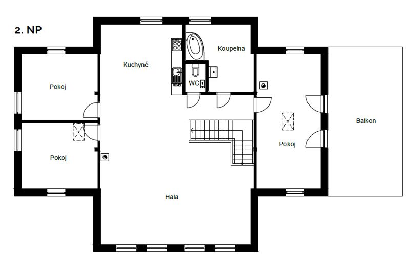 - Vytápění: tepelné čerpadlo, podlahové teplovodní topení, krbová kamna
