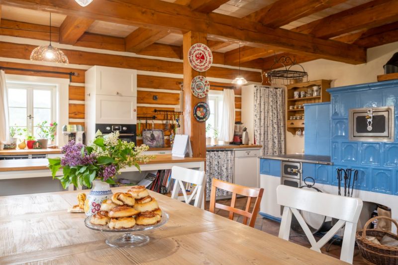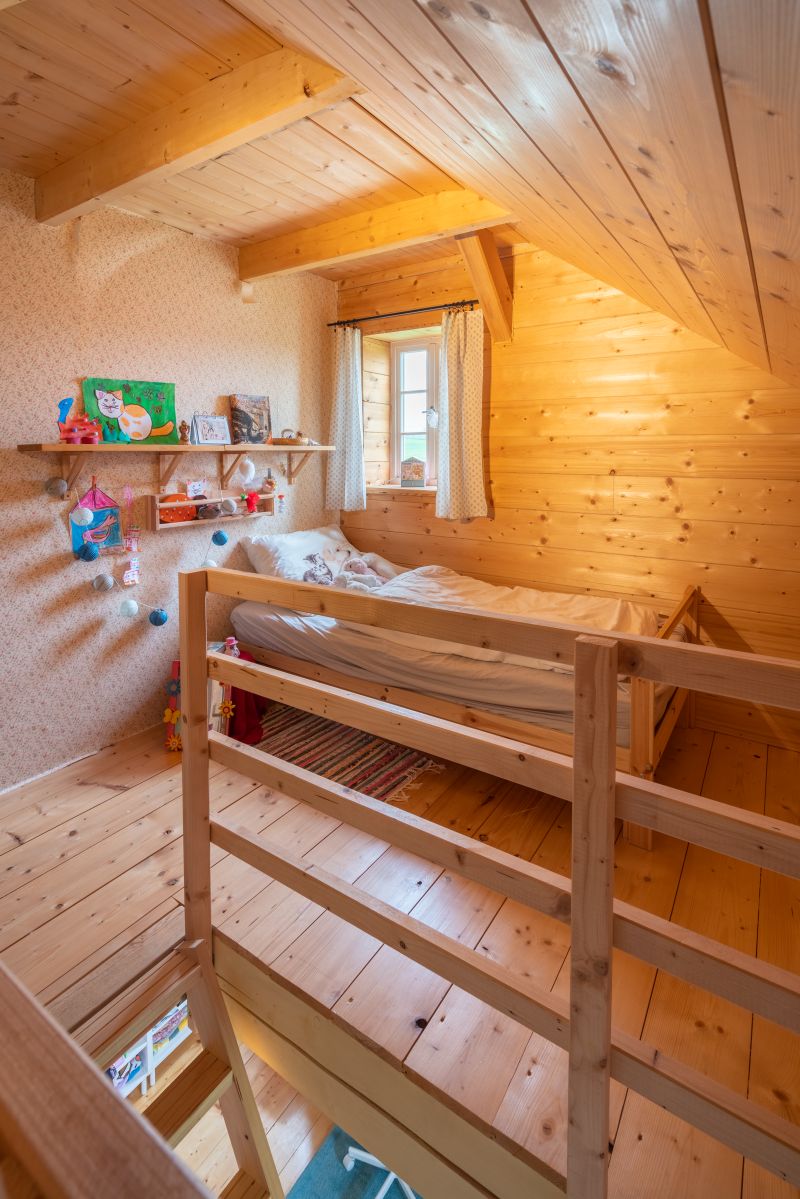 Samotná stavba trvala rok, mnoho věcí v interiéru jsme si pak už dodělávali svépomocí – jako třeba pokládání podlah nebo příčky. Doteď tu stále ještě máme nějaké resty, ale to je tak asi vždycky. Než jsme se přestěhovali, porodila jsem čtvrtou dceru, takže práce bylo pořád nad hlavu. Možná bych při pohledu zpátky zvolila stavbu z vysušených trámů, protože syrové dřevo zejména z počátku opravdu hodně pracovalo a pořád pracuje, sedá si, praská.