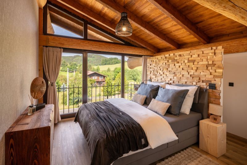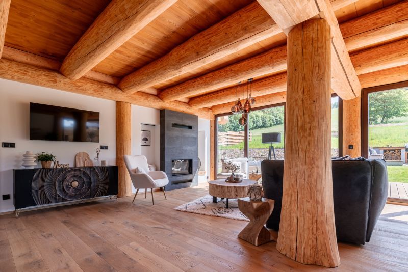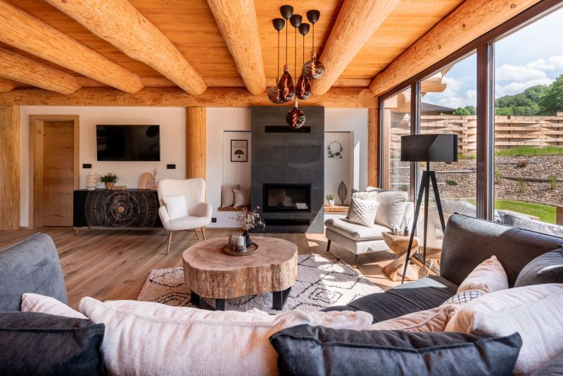 Pro trojici staveb tu dodnes používají pracovní názvy – povídali jsme si na trojce, dvojku aktuálně používají sami majitelé a jednička se v době mé návštěvy ještě dolaďovala před spuštěním sezóny. „Svým způsobem je to jednoduché," přiblížil Jirka stavbu Post and Beam domů, „ale zároveň náročné na určité detaily. Základem je dobře připravený projekt, potom vhodně zvolené materiály, správný průměr klád a v neposlední řadě potřebujete mít to správné oko. Musíte snoubit interiér s exteriérem, dát správně vyniknout mohutnosti klád a vytvořit harmonický celek i s ostatními přírodními materiály. Za mě se to povedlo a nic tu nechybí. Je to střízlivé, přírodní, hezké a útulné."