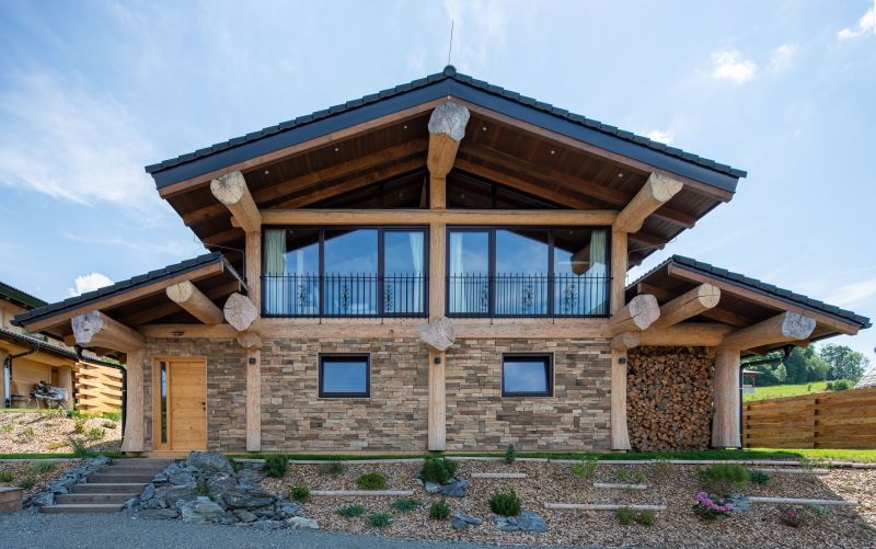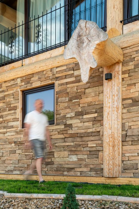 Původně plánovaný penzion neprošel přes místní regulativy kvůli výšce, a tak vznikl nápad se třemi samostatnými budovami. David je truhlář, takže ke dřevu má přirozeně blízko a o pořízení dřevostaveb tak od počátku nepochyboval. Bylo nabíledni, že mezi ostatní budovy v místě, převážně roubenky, nerušivě zapadnou, a i proto jsou tu k nim úřady benevolentnější. Finální podobou se nicméně inspirovali v zahraničí – on podobné stavby, jež nejsou typickými sruby, ale kombinují v sobě různé stavební materiály, přičemž umně využívají všech jejich výhod, znal ze svých cest a Janě učarovaly při výletě v Tatrách.