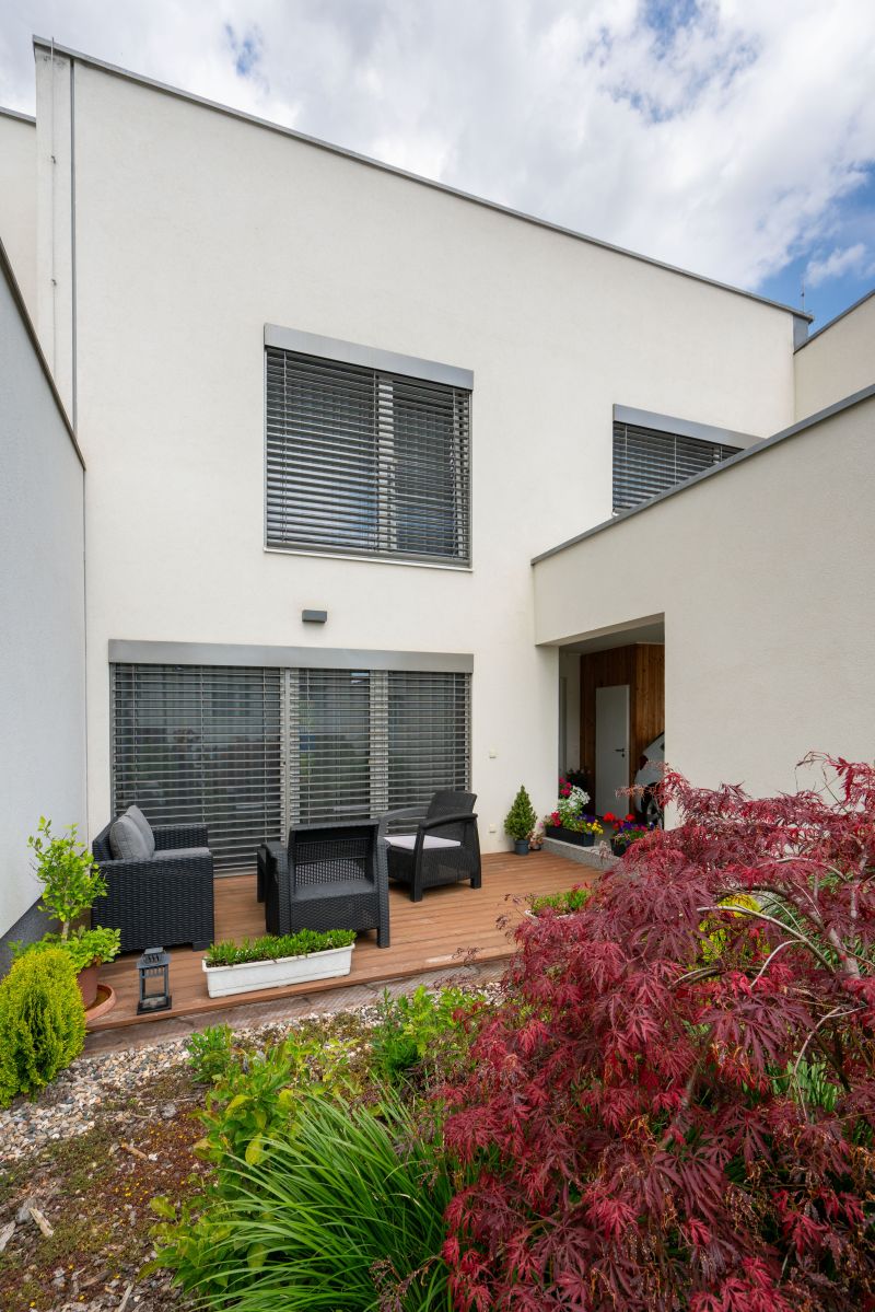 Řadový dům byl proto rozumnou volbou i z hlediska přijatelnější ceny, navíc technologie dřevostavby a další moderní vybavení zdařile eliminují nedostatky, kterými řadové domy trpěly dříve – zejména z hlediska akustiky. Roman a jeho rodina jsou ale nadšení i z bydlení v řadovém domě jako takovém – jak sám říká, se sousedy „první etapy" si dokonale sedli a fungují skvěle jako komunita Pořádají společné výlety, dovolené i posezení, pomáhají si, a pokud je něco potřeba, zařizují to společně – třeba již zmíněné venkovní žaluzie. To vše ale bez ztráty soukromí.