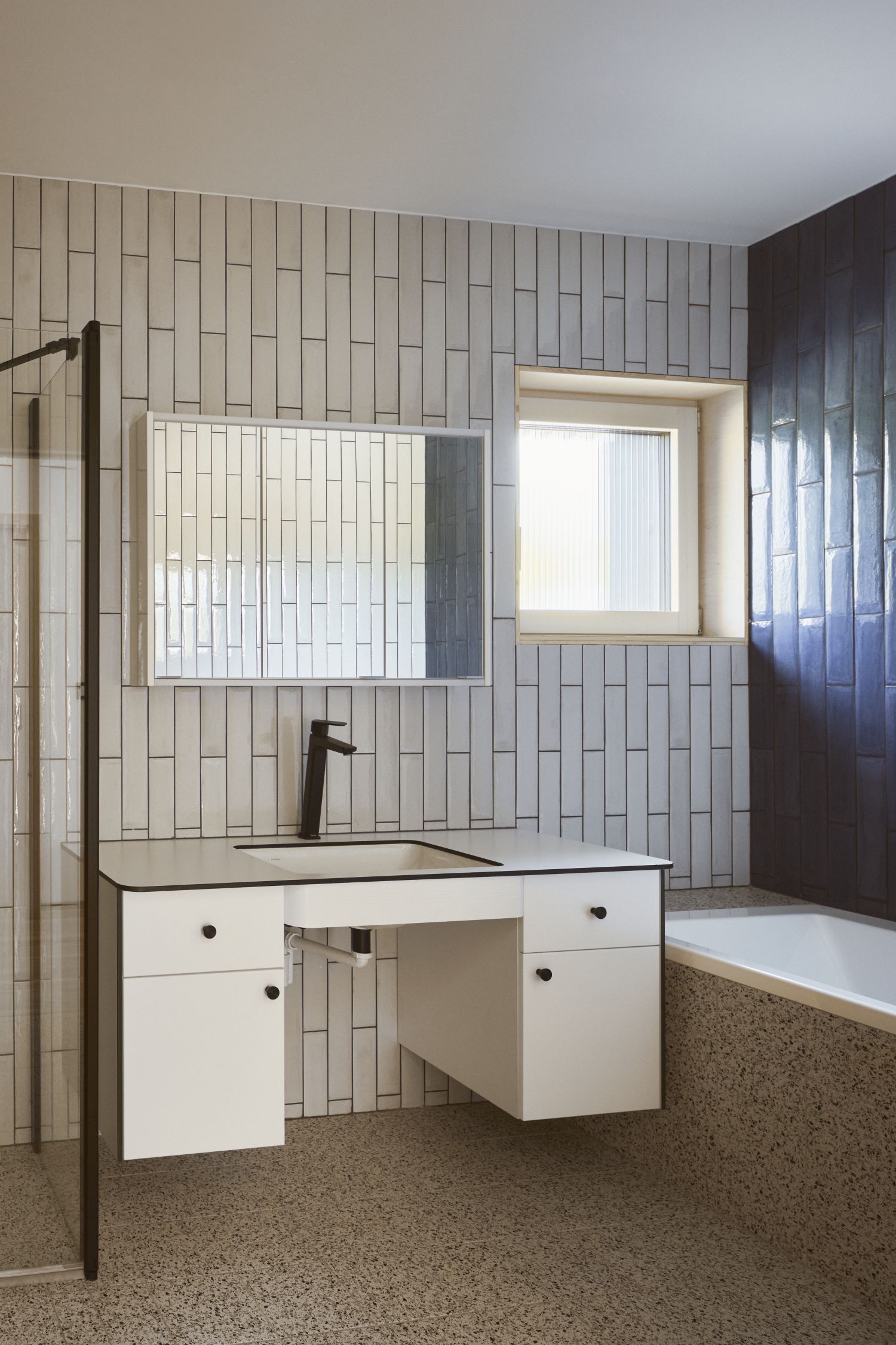 Samozřejmostí je také důraz na energetickou efektivitu a udržitelnost. Dům je postaven na rozhraní nízkoenergetického a pasivního standardu a je vybaven nuceným větráním s rekuperací tepla. Vytápění a ohřev vody zajišťuje tepelné čerpadlo vzduch/voda a do budoucna se počítá s instalací fotovoltaických panelů, které pomohou dále snížit energetickou náročnost domu.