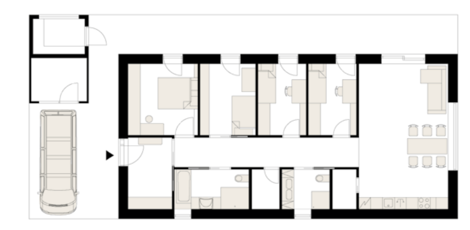 Bezbariérový dům pro pětičlennou rodinu – to byl hlavní požadavek budoucích majitelů domu, který měl vzniknout na okraji středočeské obce. Kromě bezbariérovosti kvůli tělesnému handicapu jednoho z dětí si mladá rodina přála také příjemný prostor, který by zároveň organicky zapadal do okolního prostředí. „Rodičovství v nás zformovalo pocit odpovědnosti nejen vůči rodině, ale také vůči životnímu prostředí, a tak byla dřevostavba jasnou volbou," vysvětluje svou motivaci pro tento typ stavby majitel domu Radim.
