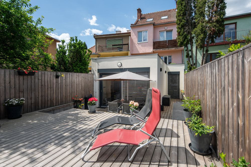 obr.: Babiččin nápad, aby jim mladí přistavěli k třípatrovému řadovému domu dřevěný „vejměnek“ a zbytek používali sami, rodině velmi pomohl – tím spíš, že se brzy rozrostla o dalšího člena. Foto: Martin Zeman