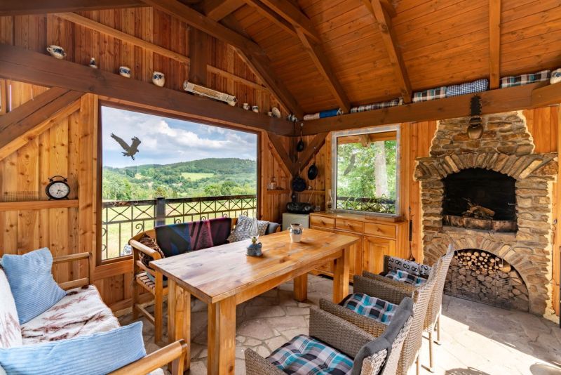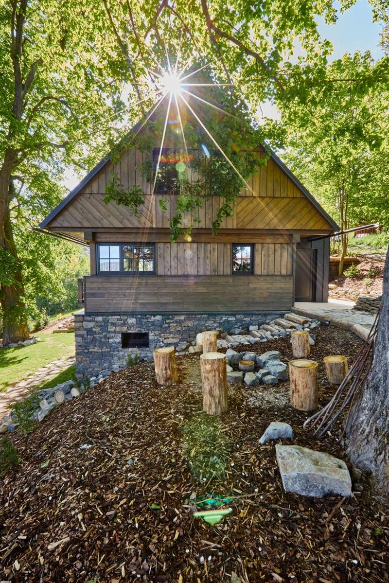 Moderní roubenka v trampské osadě