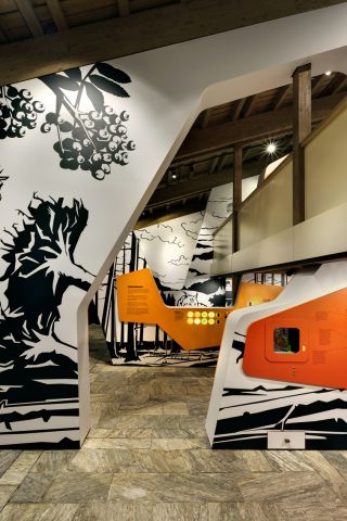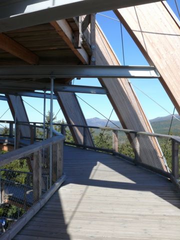 Převážně dřevěná konstrukce s proměnlivou výškou je zakončena mistrovským dílem – spirálovitou rozhlednou ve tvaru vejce, tyčící se do výšky 44 metrů. Dřevěné lepené nosníky zpevněné ocelovými ztužidly se klenou nad dvěma prastarými jedlemi a jedním bukem.