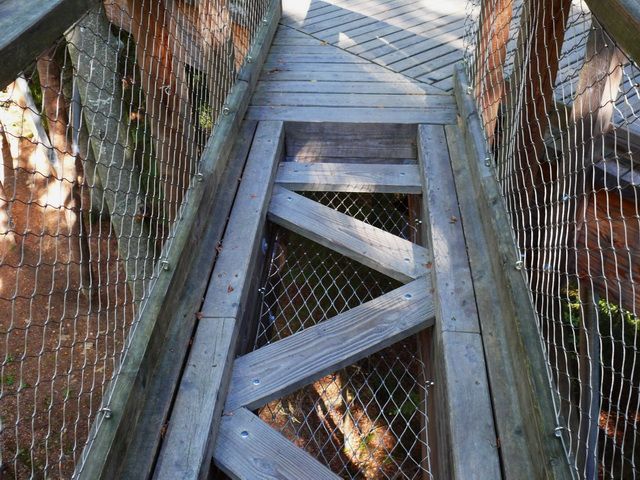 1300 metrů dlouhá cesta je zpříjemněna zastaveními s poučením o místní flóře a fauně a především se tu nachází několik krkolomných zkratek, kde si můžete vyzkoušet chůzi po ocelovém laně, kladině nebo dřevěných houpačkách. Samozřejmě bezpečně – vše je jištěno ocelovou sítí.