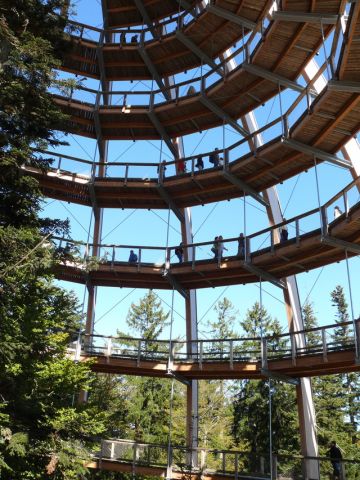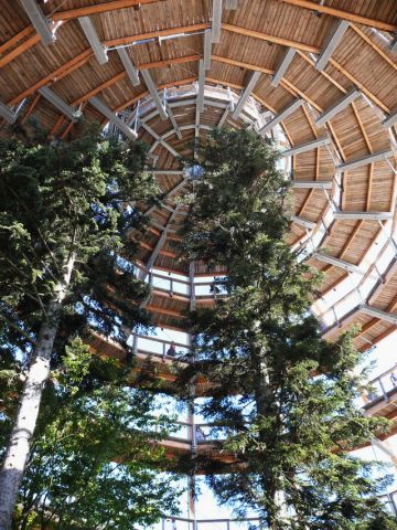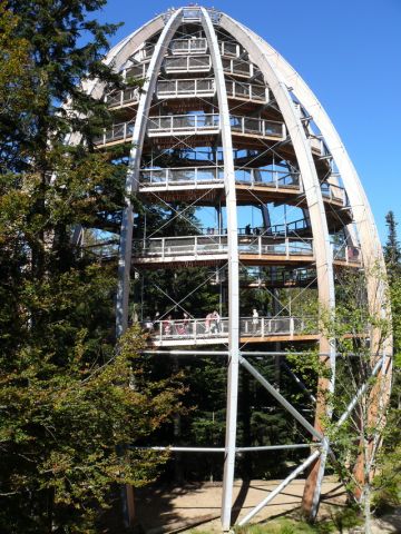 Úchvatná dřevostavba vyrostla v sousedním Německu, v Národním parku Bavorský les. Pomocí výtahu, schodiště nebo rampy vystoupáte doslova mezi koruny vzrostlých stromů, odkud můžete nerušeně pozorovat krásnou okolní přírodu.Stezka v korunách stromů, po které se dostanete až do výšky 25 metrů nad zemský povrch, je zajímavou atrakcí i pro děti.